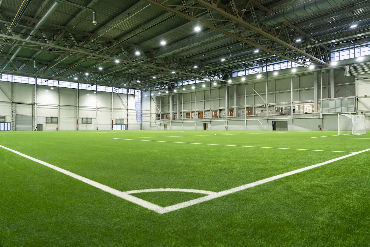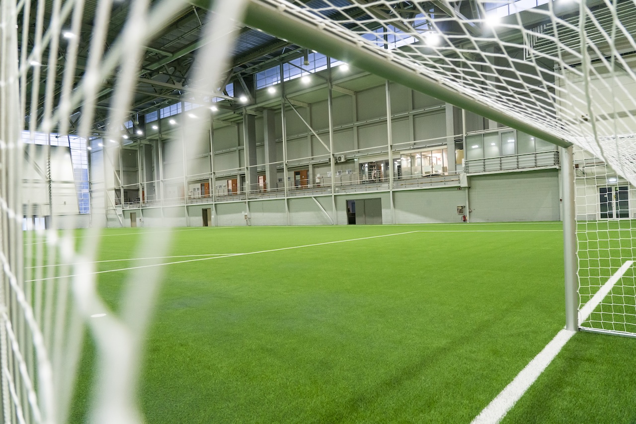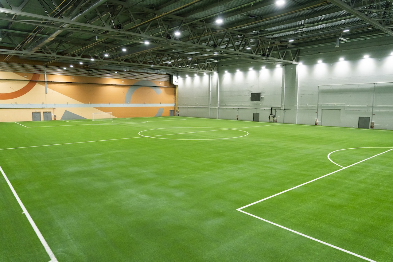 5578 m2 futbola laukums ar kvalitatīvu mākslīgā zāliena segumu telpās. Zāles plašums (66 m x 92 m) un griestu augstums (14 m) nodrošina izcilus treniņu un turnīru apstākļus.