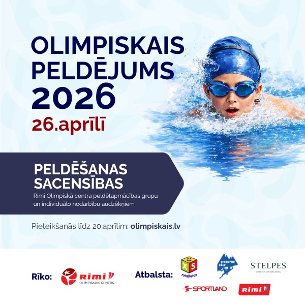 Svētdien, 12. oktobrī, plkst. 14.00–18.30, Rimi Olimpiskajā centra Lielajā peldbaseinā norisināsies peldēšanas sacensības “Olimpiskais gars”. Tās pulcēs gan jaunos, gan pieredzējušos sportistus no visas Latvijas. Aicinām visus interesentus atbalstīt peldētājus, baudīt enerģisku atmosfēru un iedvesmoties no sportistu neatlaidības.
